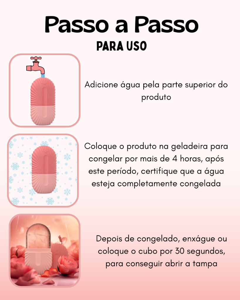 ??FÁCIL DE USAR: Encha o molde do massageador do rolo de gelo com água. Congele na geladeira por mais de 4 horas, ao usá-lo, aplique o gelo na pele em intervalos de 30 segundos em movimentos circulares. Para resultados ideais, Recomenda-se usar 1 ou 2 vezes por dia